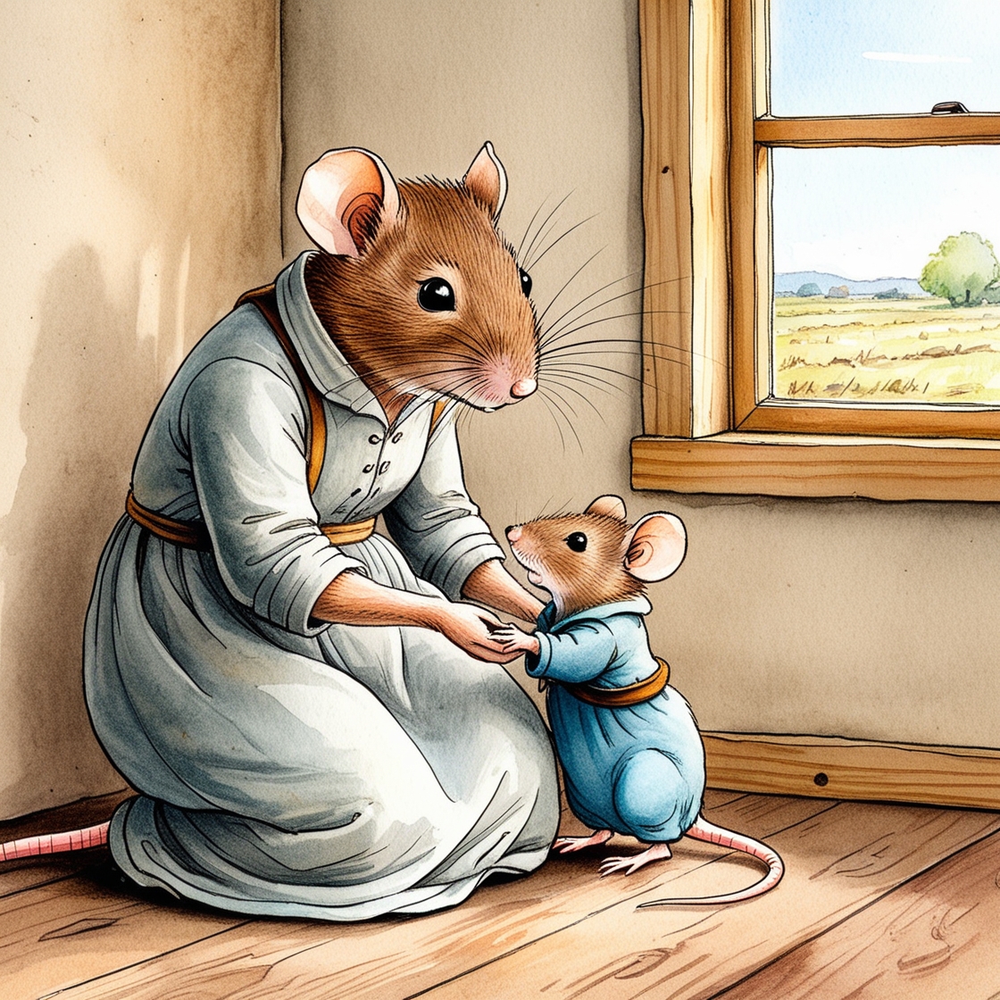 The mother field mouse then looked down and was silent for a while, but then she spoke again with determination.