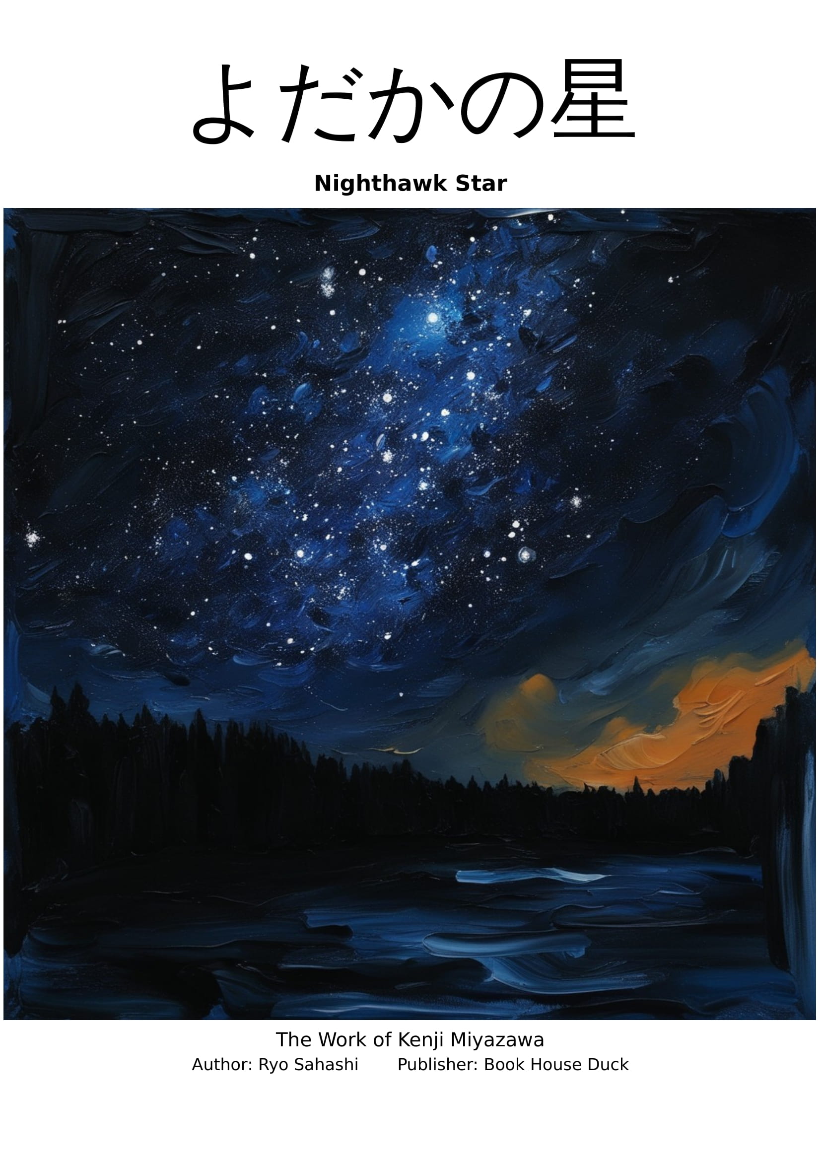 Something cold suddenly fell on his face. The nighthawk opened his eyes. Dew was dripping from a young pampas grass leaf. It was now completely dark, and countless stars were twinkling in the sky. The nighthawk flew up into the sky. Tonight, too, the edge of the mountain seemed to be burning in the afterglow of the setting sun. The nighthawk flew around in the faint afterglow of the ridgeline and the cold starlight. Then he made a wide circle in the air and, with all his might, flew straight toward the beautiful star of Orion in the western sky, shouting.